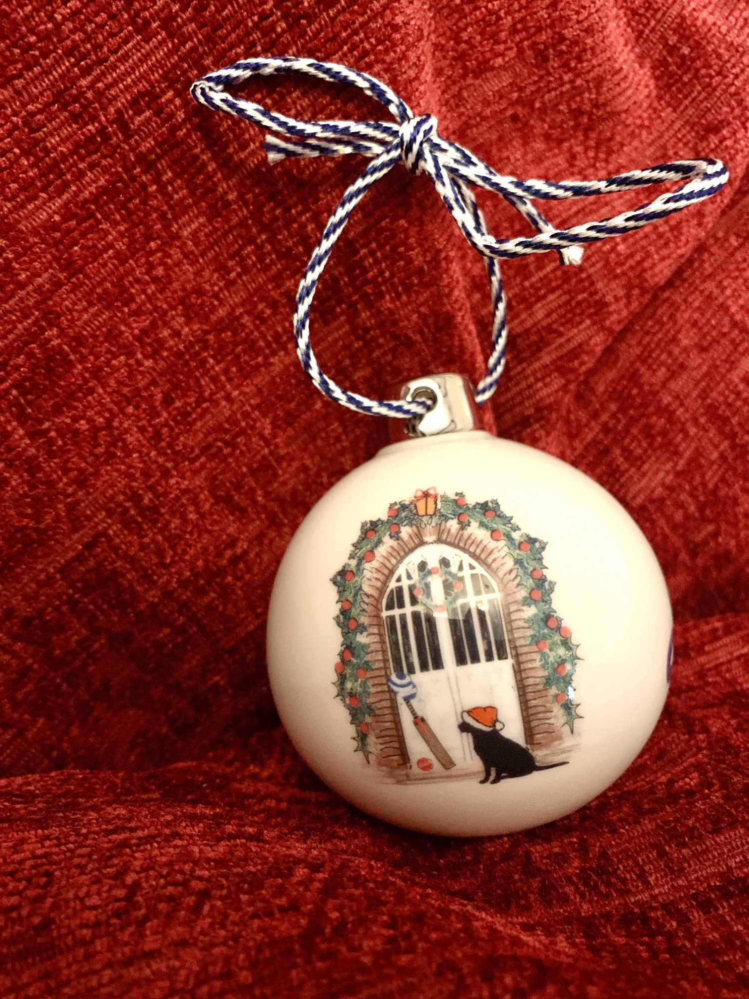Only 100 have been produced of the new 2026 Susan Rose Bone China Ludgrove Christmas bauble. Showing Quila in a Santa hat outside the front door (complete with cricket bat and cap), the bauble is THE accessory for this year's Christmas tree. And remember... once they're gone, they're gone!